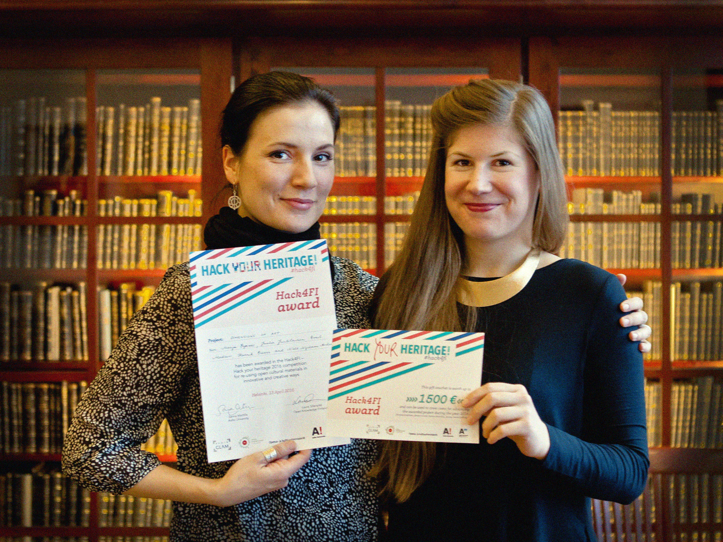 Tiedote 15.4.2016 Kolme avoimia digitaalisia kulttuuriaineistoja hyödyntävää työtä palkittiin Hack4FI – Hack your heritage 2016 päätöstilaisuudessa. Taustalla oli helmikuussa toista kertaa järjestetty kulttuurihackathon, joka keräsi yhteen lähes 100 eri alojen ammattilaista. Hackathonin aikana luotiin arkistojen aineistoista ja datasta uutta tietoa, taide- ja kulttuuriteoksia sekä palvelukonsepteja. Svenska litteratursällskapet i Finlandin upeassa juhlasalissa […]